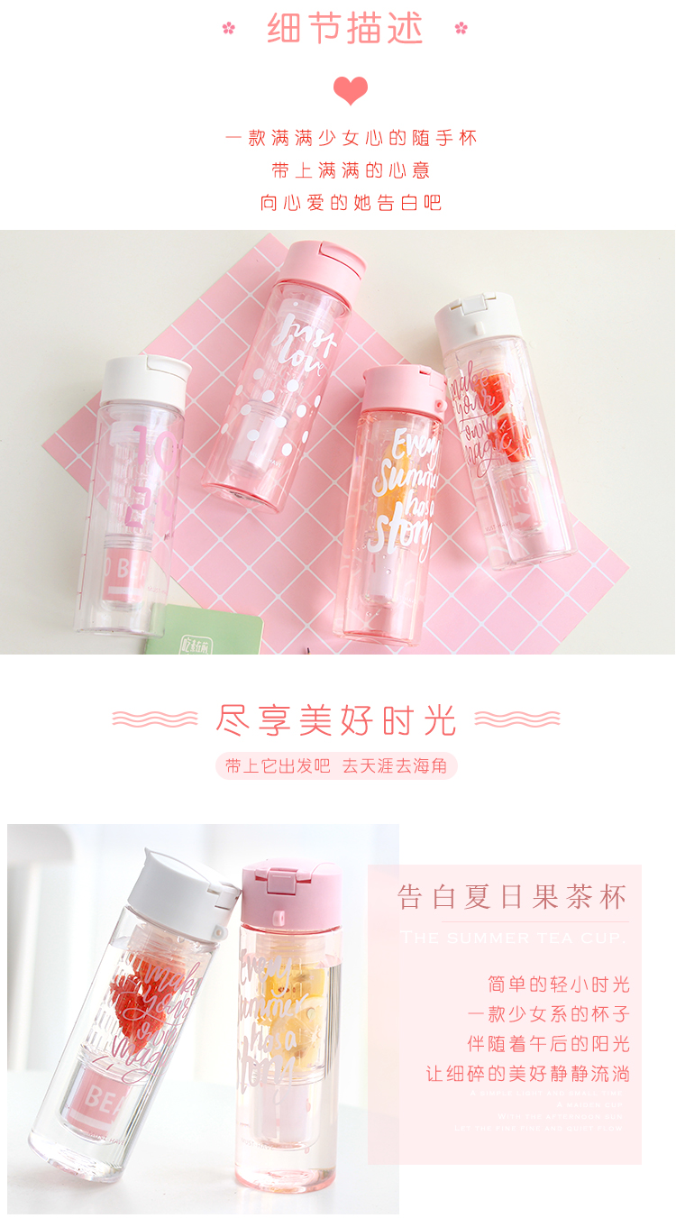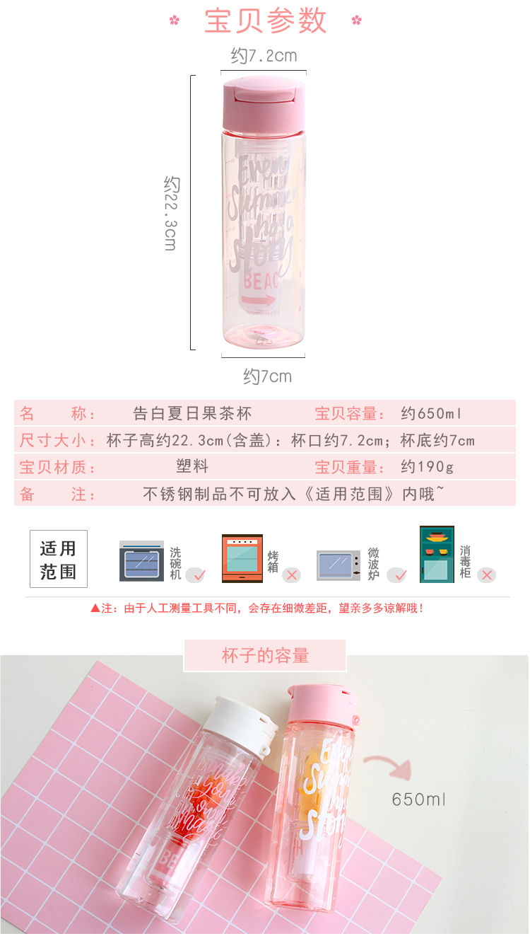 產品特點:食品級材質,攜帶方便,杯口圓滑,650ML容量,一款滿滿少女心的隨手杯